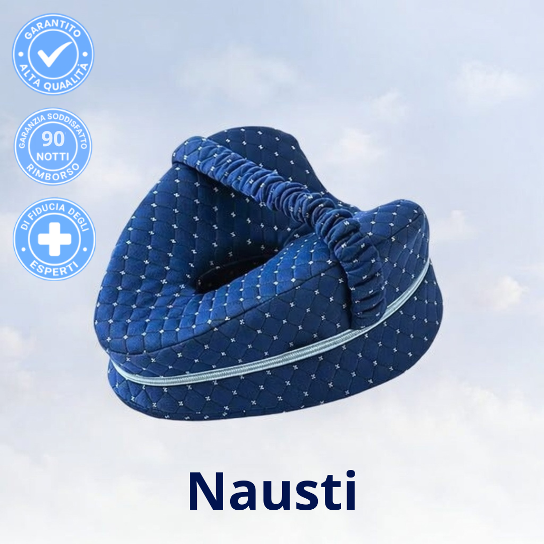 Sì. Il dolore sciatico è spesso causato da una compressione nervosa dovuta a una torsione del bacino durante la notte. Come si vede nella nostra animazione anatomica, il cuscino Nausti mantiene una distanza precisa che allinea la colonna vertebrale e allevia istantaneamente la pressione sul nervo.