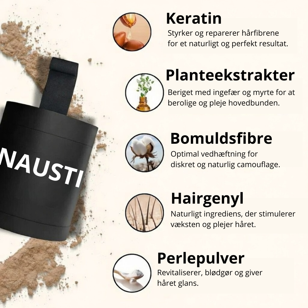 Med Nausti hårpudder behøver du ikke længere vælge mellem at acceptere et træt udseende og tidskrævende løsninger.