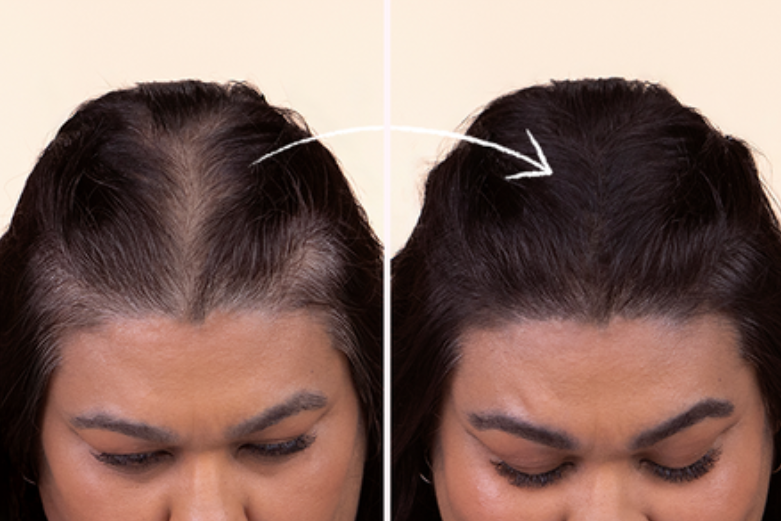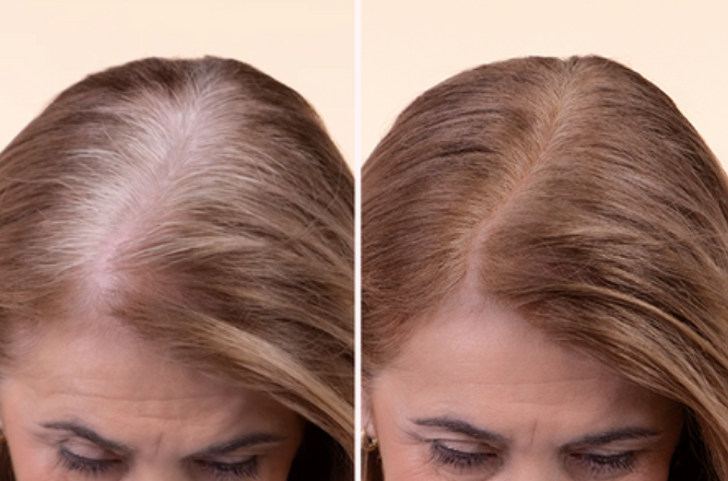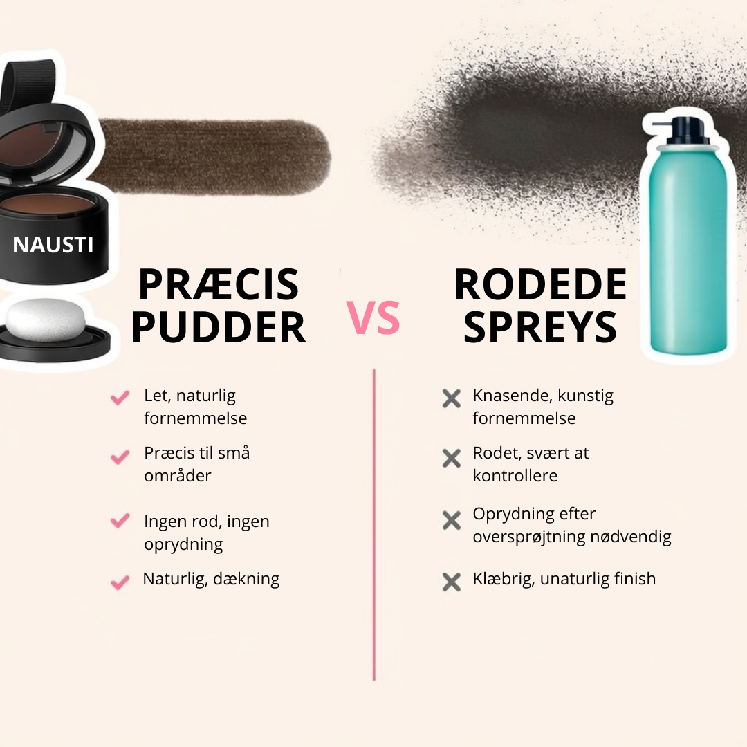 Nausti camouflerer øjeblikkeligt tynde områder og synlige rødder, så håret får et mere fyldigt udseende på få sekunder.
